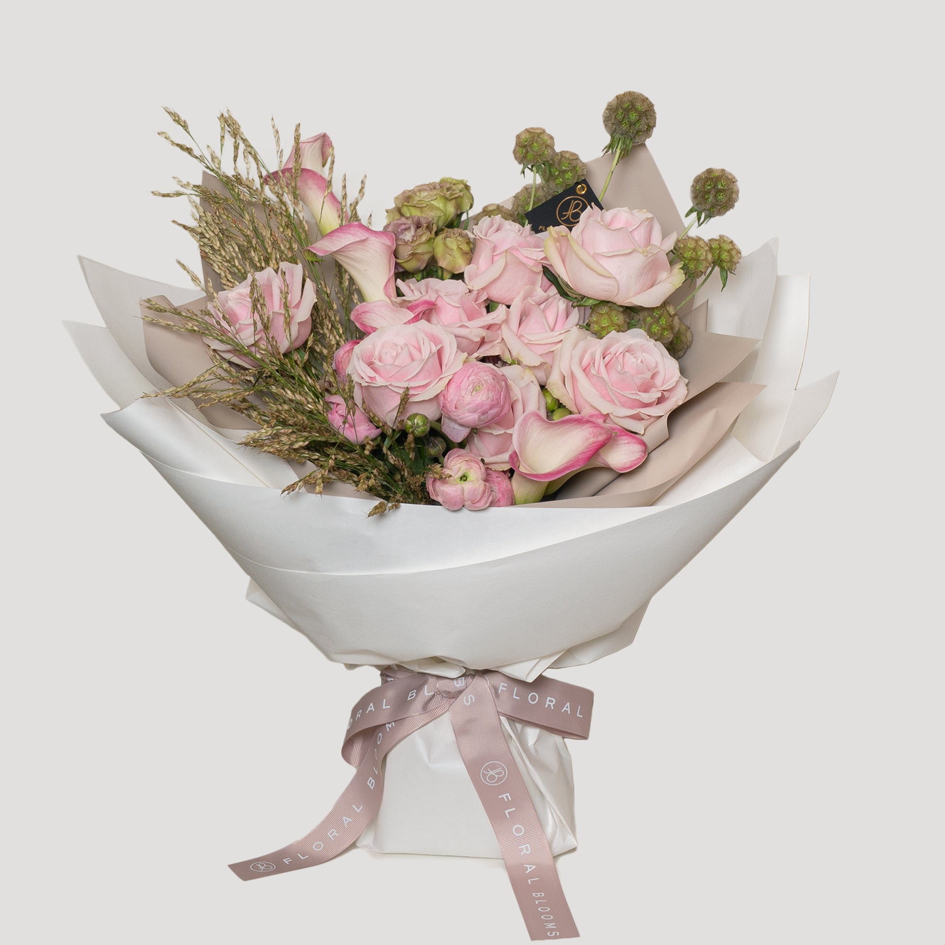 Pink roses, calla lilies, and ranunculus create a beautiful representation of school life. Wheat symbolizes the hard work of sowing and reaping throughout the years of study, while lisianthus and windmill fruit add a touch of sophistication, reflecting the wisdom gained by the graduate over time.